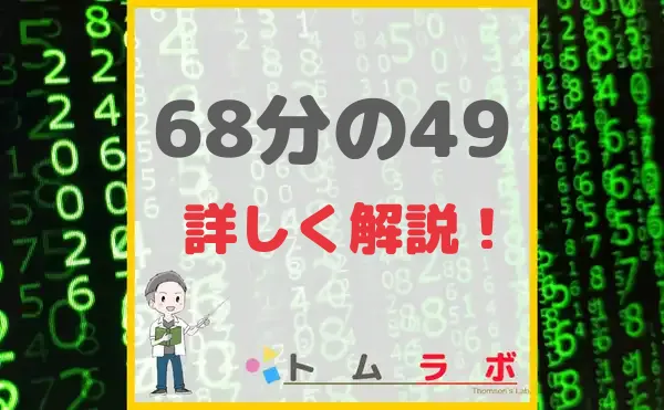 本記事では68分の49が何パーセントなのか、小数で表すとどうなるか、約分できるかについて説明します! 【68分の49のまとめ】 最初に68分の49の特徴をまとめます! では、1つずつ考え方と計算方法を説明します! 小数にすると0.72 小数にするには$49\div68... -