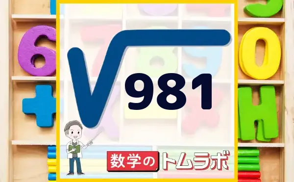 981の平方根とは、2乗すると981になる数値のことです。 981の平方根は、31.32091…のことです。 また、ルートの記号を使うことで、981の平方根をサムネイル画像のようにルート981と記せます。 では、981の平方根の計算法を解説していきます。 【981の平方根... -